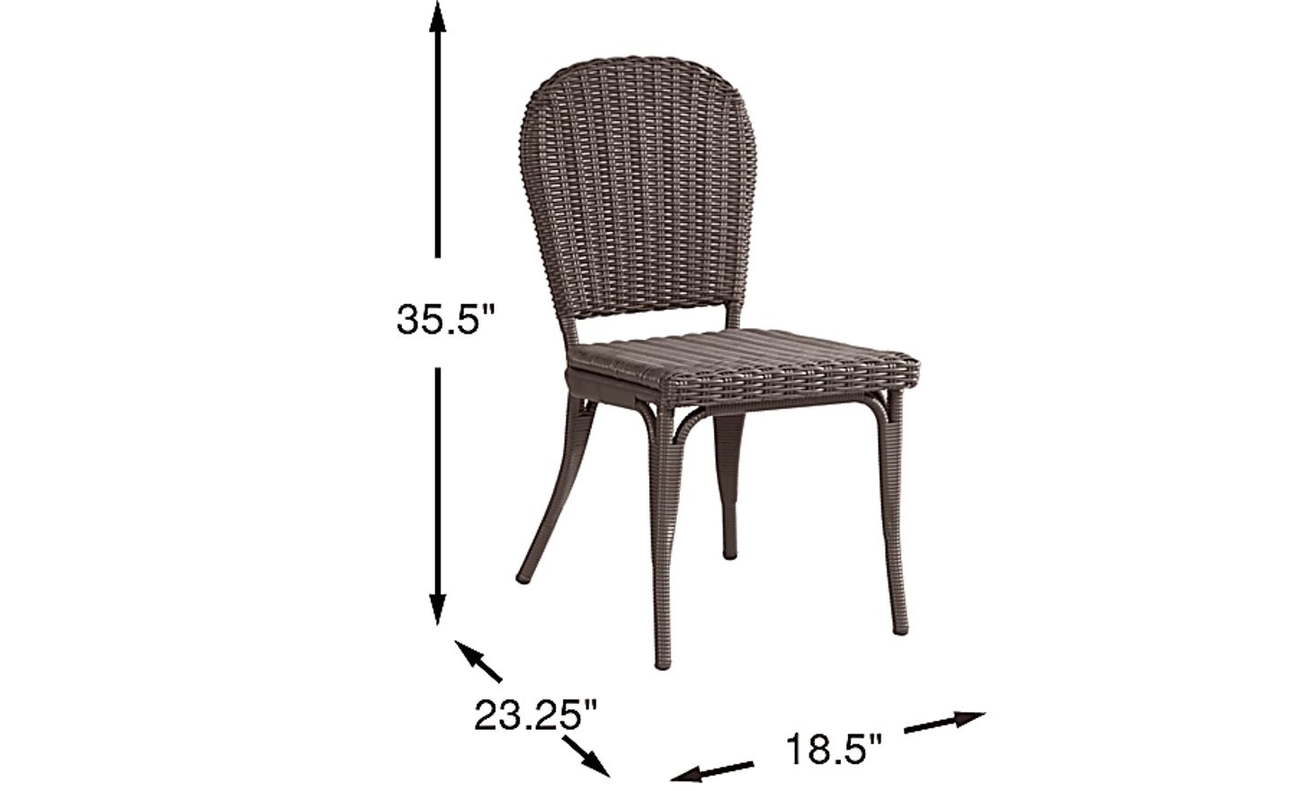 Gather in French Provencal style with the Patmos outdoor bistro chair. Crafted with brown woven all-weather wicker with a supportive back, this piece is a wonderful and durable addition to your outdoor space.