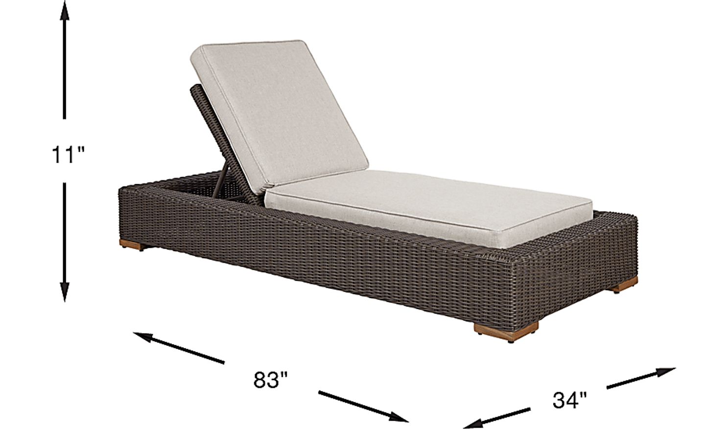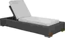 Pairing a streamlined silhouette with stylish French Provencal style, the Patmos chaise lounge chair is a poolside essential. Crafted from woven wicker in a brown finish, an adjustable back creates the perfect amount of relaxation whether you're reading by the pool or lounging under the sun. Providing a comfortable surface to relax, it features padded linen colored Sunbrella cushions that are durable and resistant against mold, mildew and UV rays. 100% Sunbrella fabric. To clean Sunbrella fabric cushions remove dirt and spray on cleaning solution (water and mild soap), then use a soft bristle brush or sponge. Allow cleaning solution to soak into fabric and rinse thoroughly until soap residue is removed. Air dry. Do not dry clean.