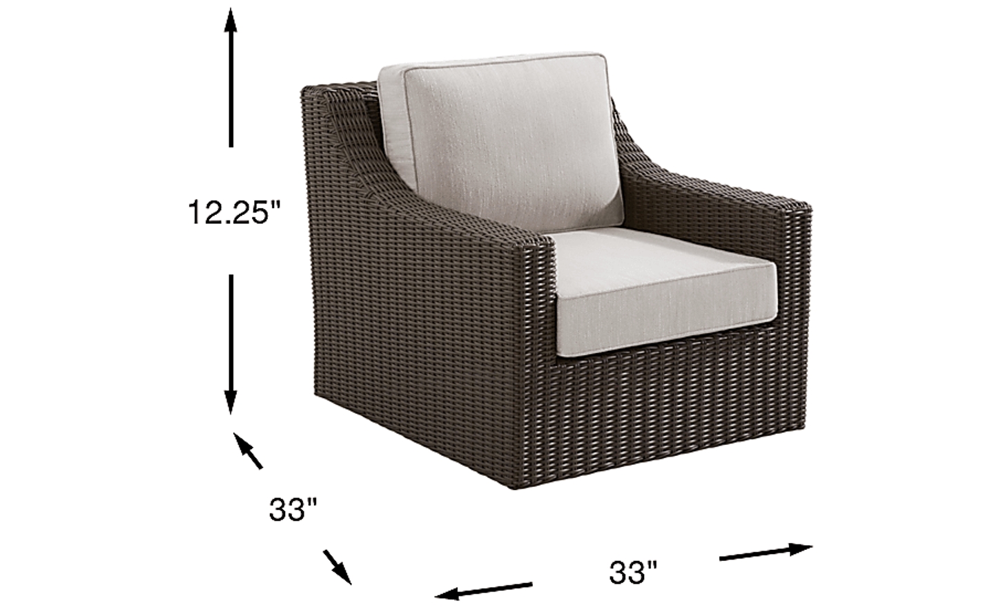 Helping you seize leisurely moments in your backyard, the Patmos swivel rocker is the perfect place to lounge after a long day. Inspired by French Provencal style, it's crafted of woven wicker in a brown finish and features gracefully sloped arms and a slim silhouette. Each durable twine colored cushion is colorfast as well as mold and mildew resistant. Gentle swivel and rocking capabilities provide additional ways to unwind. Select cushion colors also available in Sunbrella fabric.