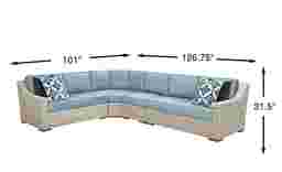 This sectional is engineered for long-term durability using a powder-coated aluminum frame, which is inherently rustproof—a critical feature for maintaining structural integrity in humid or rainy environments. The exterior is crafted from woven all-weather wicker that resists moisture and UV degradation, while the unit is anchored by square teak feet. Teak is a premium hardwood naturally rich in protective oils, making it exceptionally resistant to rot and decay even when in direct contact with patio surfaces.