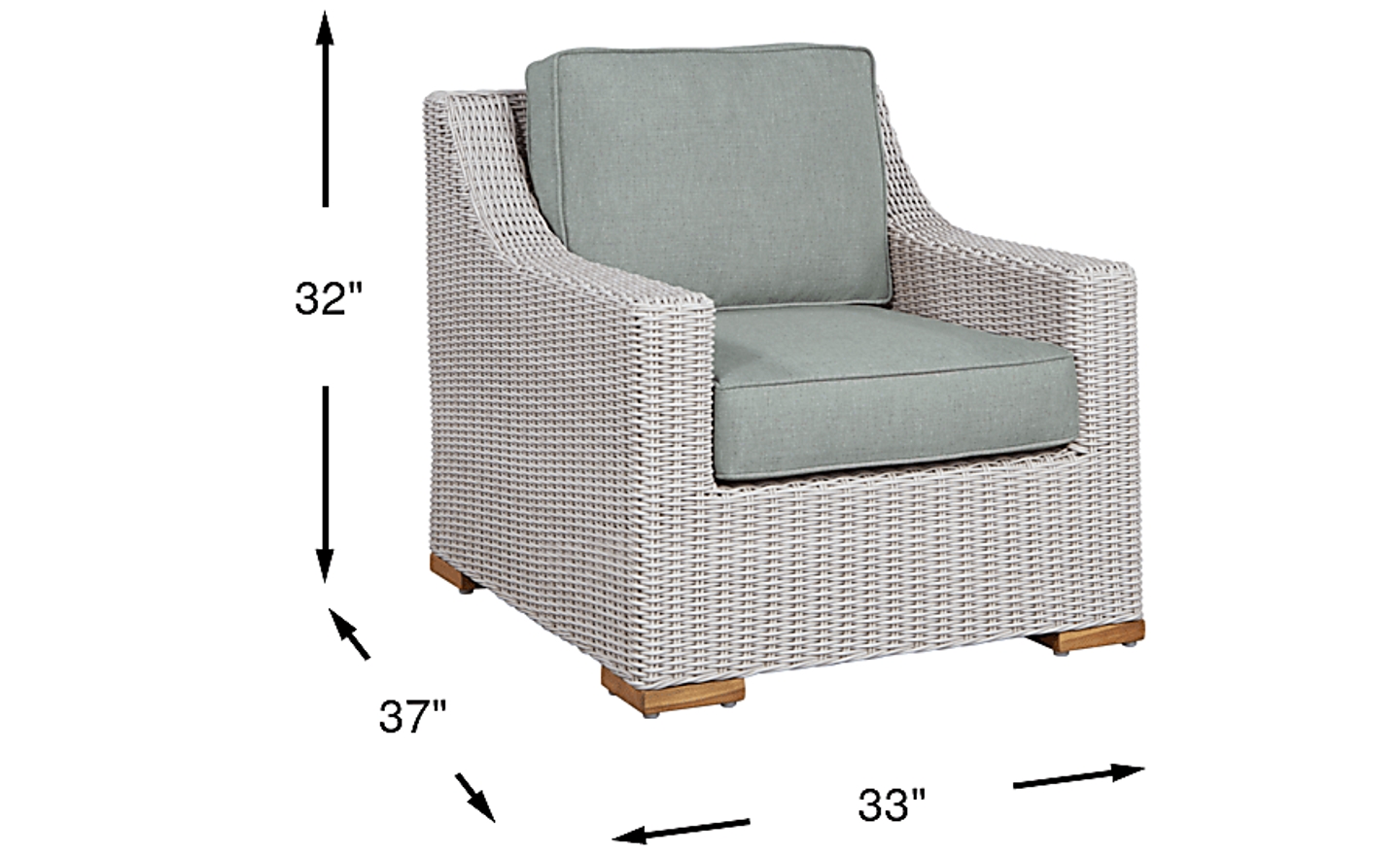 Helping you seize leisurely moments in your backyard, the Patmos chair is the perfect place to lounge after a long day. Inspired by French Provencal style, it's crafted of gray finished woven wicker and features gracefully sloped arms and a slim silhouette. Each durable moss blue-gray colored Sunbrella cushion is colorfast as well as mold and mildew resistant. 100% Sunbrella fabric. To clean Sunbrella fabric cushions remove dirt and spray on cleaning solution (water and mild soap), then use a soft bristle brush or sponge. Allow cleaning solution to soak into fabric and rinse thoroughly until soap residue is removed. Air dry. Do not dry clean.