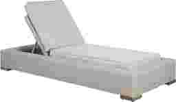 Pairing a streamlined silhouette with stylish French Provencal style, the Patmos chaise lounge chair is a poolside essential. Crafted from woven wicker in a gray finish, an adjustable back creates the perfect amount of relaxation whether you're reading by the pool or lounging under the sun. Providing a comfortable surface to relax, it features padded linen colored Sunbrella cushions that are durable and resistant against mold, mildew and UV rays. 100% Sunbrella fabric. To clean Sunbrella fabric cushions remove dirt and spray on cleaning solution (water and mild soap), then use a soft bristle brush or sponge. Allow cleaning solution to soak into fabric and rinse thoroughly until soap residue is removed. Air dry. Do not dry clean.