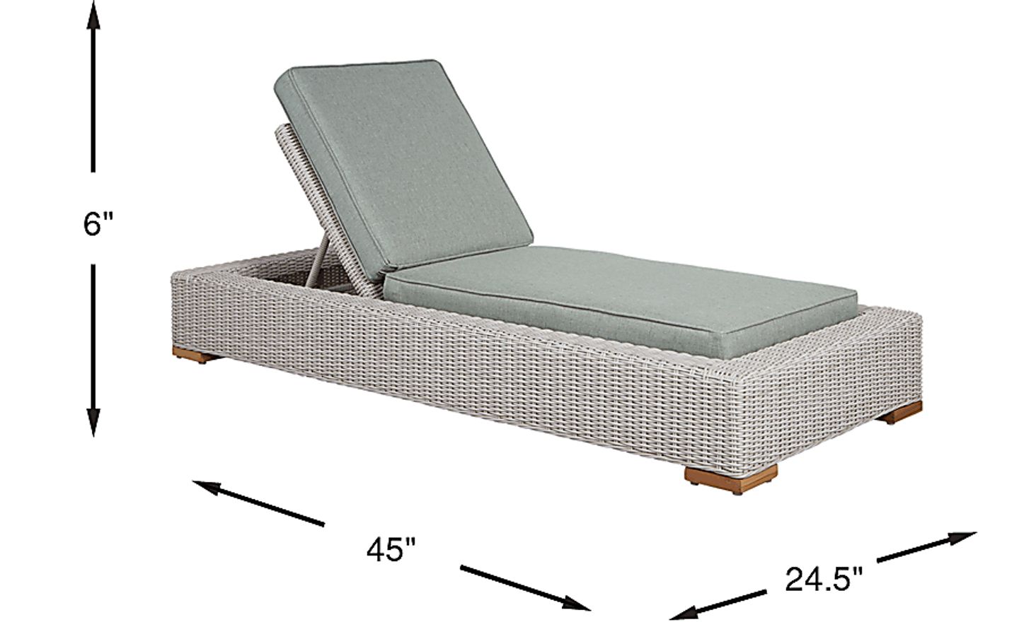 Pairing a streamlined silhouette with stylish French Provencal style, the Patmos chaise lounge chairs are a poolside essential. Crafted from woven wicker in a gray finish, an adjustable back creates the perfect amount of relaxation whether you're reading by the pool or lounging under the sun. Providing a comfortable surface to relax, they feature padded mist blue-gray colored Sunbrella cushions that are durable and resistant against mold, mildew and UV rays. 100% Sunbrella fabric. To clean Sunbrella fabric cushions remove dirt and spray on cleaning solution (water and mild soap), then use a soft bristle brush or sponge. Allow cleaning solution to soak into fabric and rinse thoroughly until soap residue is removed. Air dry. Do not dry clean.