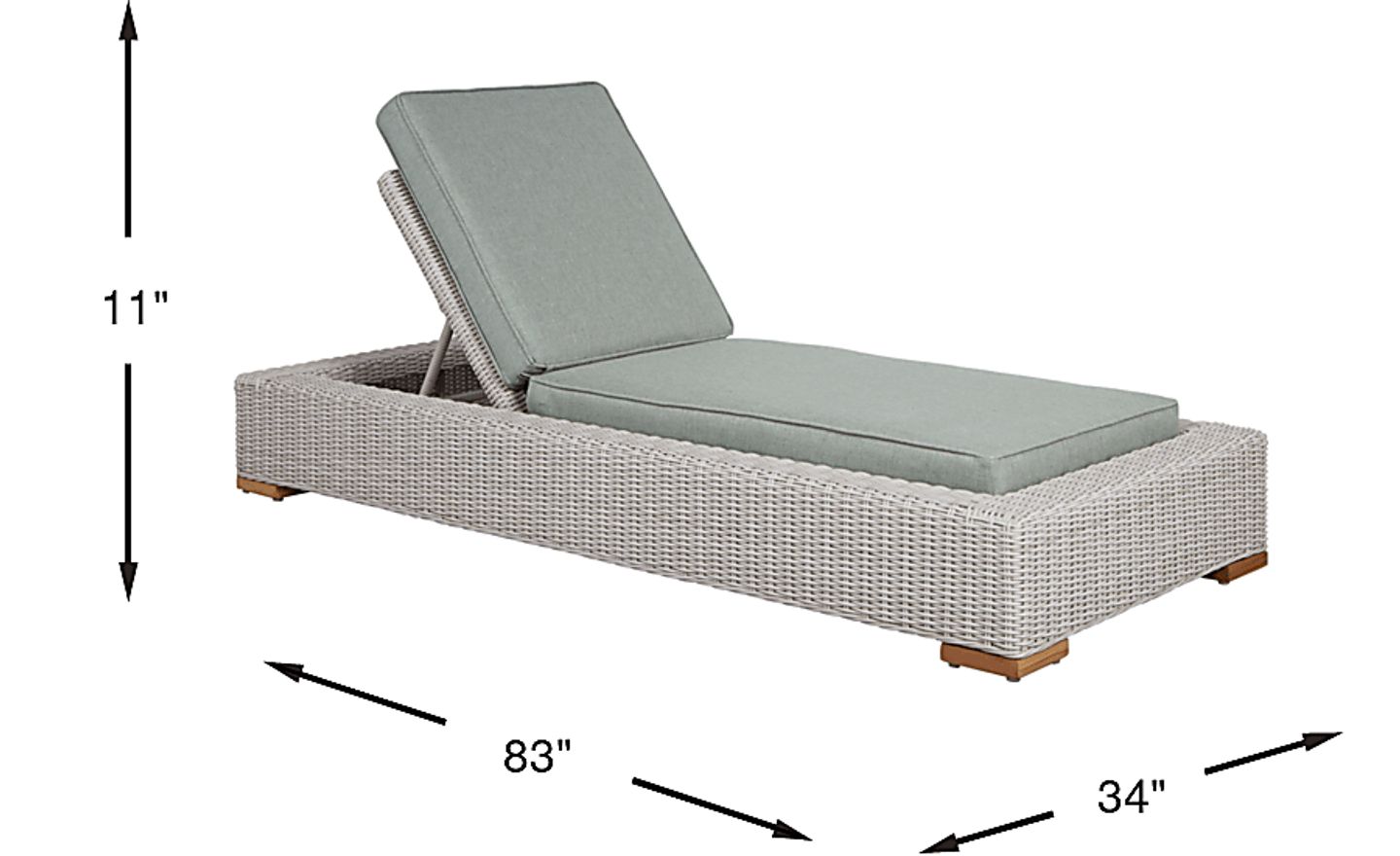 Pairing a streamlined silhouette with stylish French Provencal style, the Patmos chaise lounge chair is a poolside essential. Crafted from woven wicker in a gray finish, an adjustable back creates the perfect amount of relaxation whether you're reading by the pool or lounging under the sun. Providing a comfortable surface to relax, it features padded moss blue-gray colored Sunbrella cushions that are durable and resistant against mold, mildew and UV rays. 100% Sunbrella fabric. To clean Sunbrella fabric cushions remove dirt and spray on cleaning solution (water and mild soap), then use a soft bristle brush or sponge. Allow cleaning solution to soak into fabric and rinse thoroughly until soap residue is removed. Air dry. Do not dry clean.