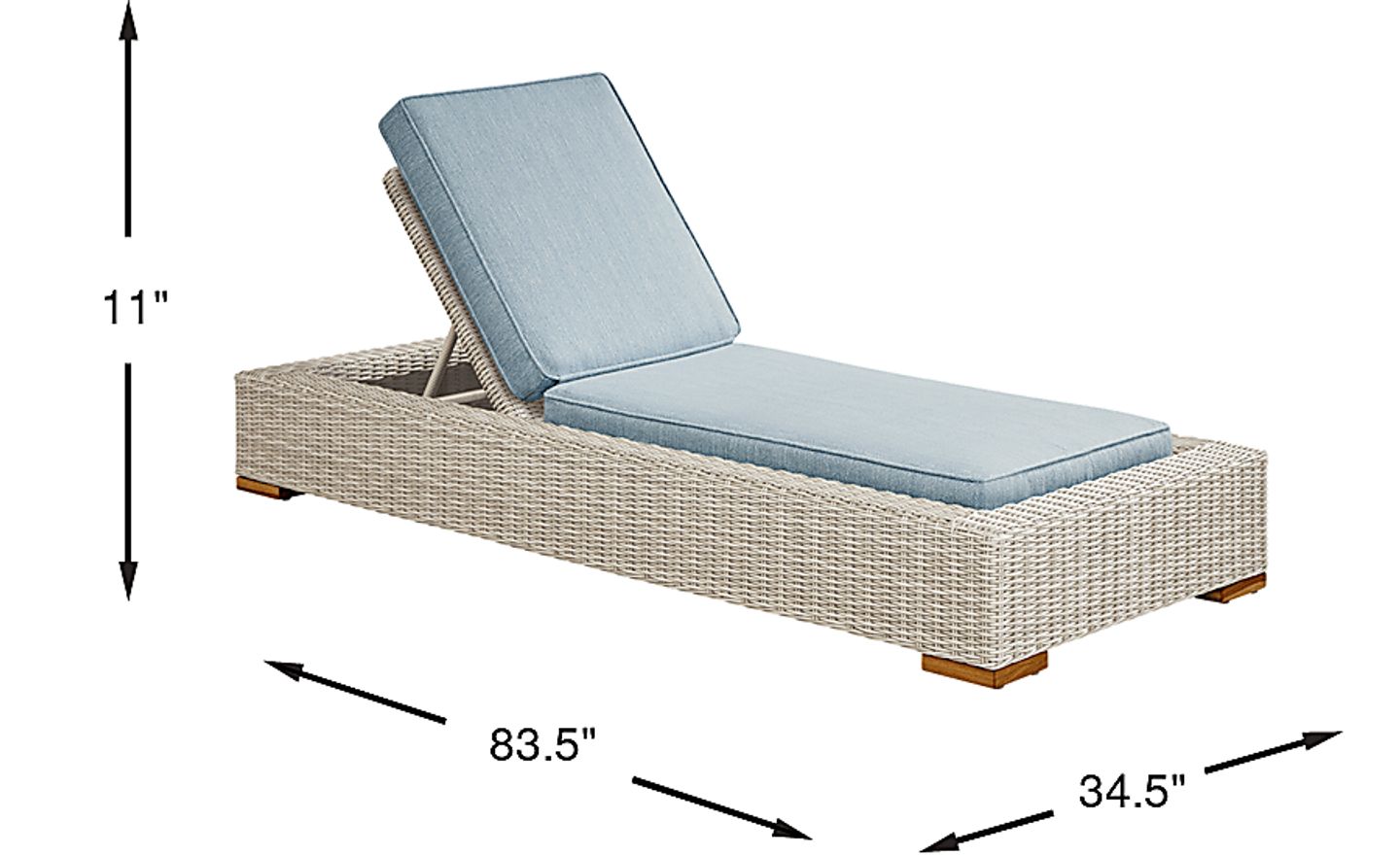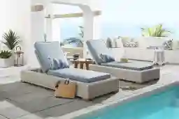 Each chaise lounge has a footprint of 34"w x 83"d. When placing the pair together, we recommend a minimum area of approximately 7 to 8 feet in width to allow for comfortable movement between the lounges and room for a small side table. Their armless, streamlined silhouette is particularly effective at maximizing space on pool decks or large balconies without sacrificing the luxury of a full-length lounge.