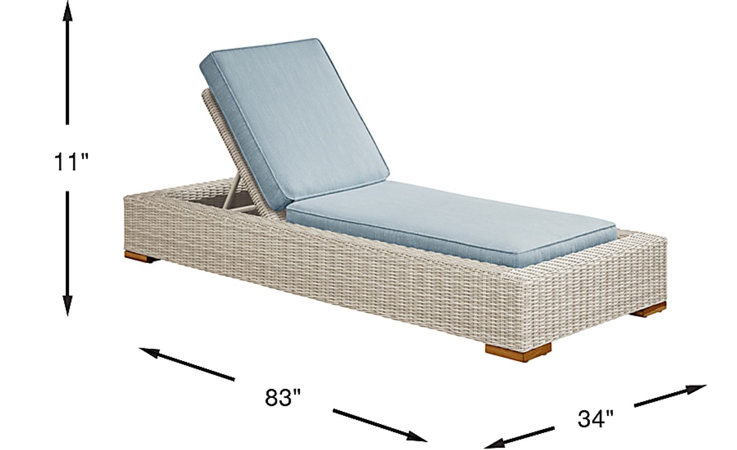 Pairing a streamlined silhouette with stylish French Provencal style, the Patmos chaise lounge chair is a poolside essential. Crafted from woven wicker in a gray finish, an adjustable back creates the perfect amount of relaxation whether you're reading by the pool or lounging under the sun. Providing a comfortable surface to relax, it features padded steel colored Sunbrella cushions that are durable and resistant against mold, mildew and UV rays. 100% Sunbrella fabric. To clean Sunbrella fabric cushions remove dirt and spray on cleaning solution (water and mild soap), then use a soft bristle brush or sponge. Allow cleaning solution to soak into fabric and rinse thoroughly until soap residue is removed. Air dry. Do not dry clean.