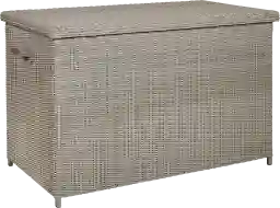 Store your outdoor cushions in style with the Patmos cushion box. This handy storage unit with a lift-top lid offers a convenient place to tuck away seat cushions when not in use. The box is crafted from woven all-weather wicker in a gray finish.