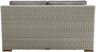 Inspired by French Provencal style, the Patmos loveseat's breezy feel and sleek look will have you relaxing in your backyard in no time. You'll enjoy many nights gazing at the stars, or relaxing conversations at the poolside thanks to the two deep, padded seats. Each mushroom-colored performance cushion in Sunbrella fabric is resistant to UV rays, mold and mildew, making them easy to maintain. Crafted from woven wicker in a gray finish, clean lines and graceful curved arms create a sophisticated silhouette. Decorative toss pillows add a designer touch. 100% Sunbrella fabric. To clean Sunbrella fabric cushions remove dirt and spray on cleaning solution (water and mild soap), then use a soft bristle brush or sponge. Allow cleaning solution to soak into fabric and rinse thoroughly until soap residue is removed. Air dry. Do not dry clean.