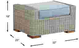 The perfect addition to its matching set, the Patmos ottoman enhances your outdoor comfort with padded cushioning and a breezy relaxed look. Crafted from woven wicker in a gray finish, it's not only a great place to stretch out your legs, but it can also serve as an extra seat for an unexpected guest. The durable, outdoor performance InsideOut cushion in a steel color is easy to care for and offers an elevated touch of class for your patio. Select cushion colors also available in Sunbrella fabric.