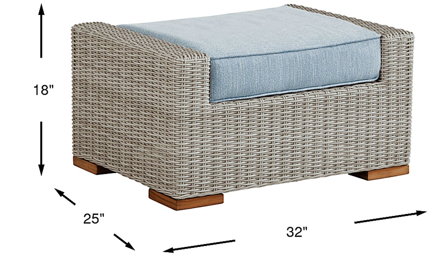 This ottoman is specifically designed for long-term outdoor durability. Wicker is an ideal material for high-moisture regions like Florida or the Gulf Coast because it is naturally moisture-resistant and breathable, preventing the heat and humidity from damaging the frame. The gray woven finish is engineered to be weather-resistant, ensuring it maintains its sophisticated look even when exposed to salt air or intense sun.