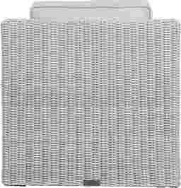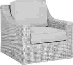 Rock the day away with the comfortable Patmos rocker chair. Inspired by French Provencal style, it's crafted of gray finished woven wicker and features gracefully sloped arms and a slim silhouette. Each durable linen colored Sunbrella cushion is colorfast as well as mold and mildew resistant. The gentle rocking function offers the perfect way to relax outside. 100% Sunbrella fabric. To clean Sunbrella fabric cushions remove dirt and spray on cleaning solution (water and mild soap), then use a soft bristle brush or sponge. Allow cleaning solution to soak into fabric and rinse thoroughly until soap residue is removed. Air dry. Do not dry clean.