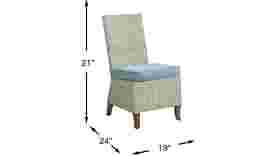 The Patmos dining chair adds a sophisticated update to your outdoor dining area thanks to a casual vibe inspired by effortless French Provencal style. Crafted with gray woven wicker for a breezy touch, it's a great option for outdoor dining. A removable padded steel colored Sunbrella cushion is mold and UV resistant. Beautiful and durable teak legs provide support. Select cushion colors also available in Sunbrella fabric.