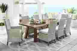 Patmos Tan 7 Pc 102 In. Rectangle Outdoor Dining Set With Linen Cushions