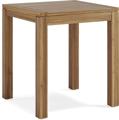 Enjoy the beauty and durability of natural teak with the Patmos bar height dining collection. Made for outdoor parties and refreshments, this set includes a 71 x 35 inch table with a plank style top. An umbrella hole in the center of the table can be capped when not in use. Matching backless bar height stools complete the group in casual style.