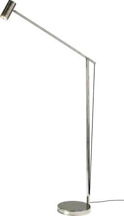 A flexible task light, the Patsy Post floor lamp has a long arm that is easy to adjust in height and rotation. A polished nickel finish, accented with a black fabric cord communicates a polished, contemporary look. This floor lamp makes use of its black cloth covered cord and a special spring hidden in the base to balance its arm at any angle you choose to pose it. A small but powerful cylinder shade holds an energy-efficient 7 Watt LED that is replaceable. The simple 4-way touch dimmer switch is located at the end of the shade. Partial assembly may be required.