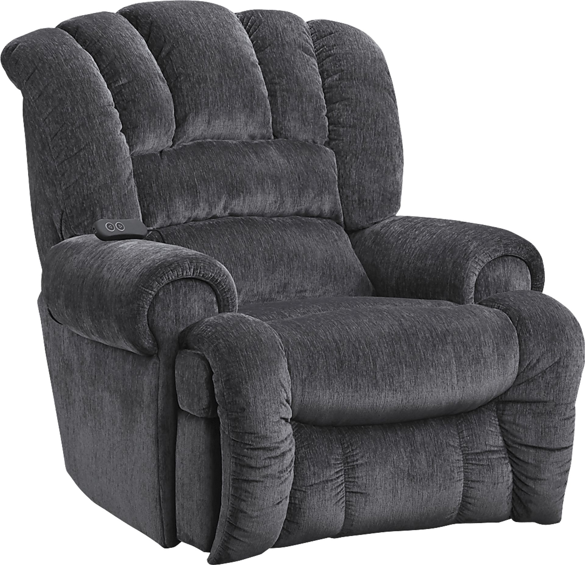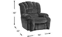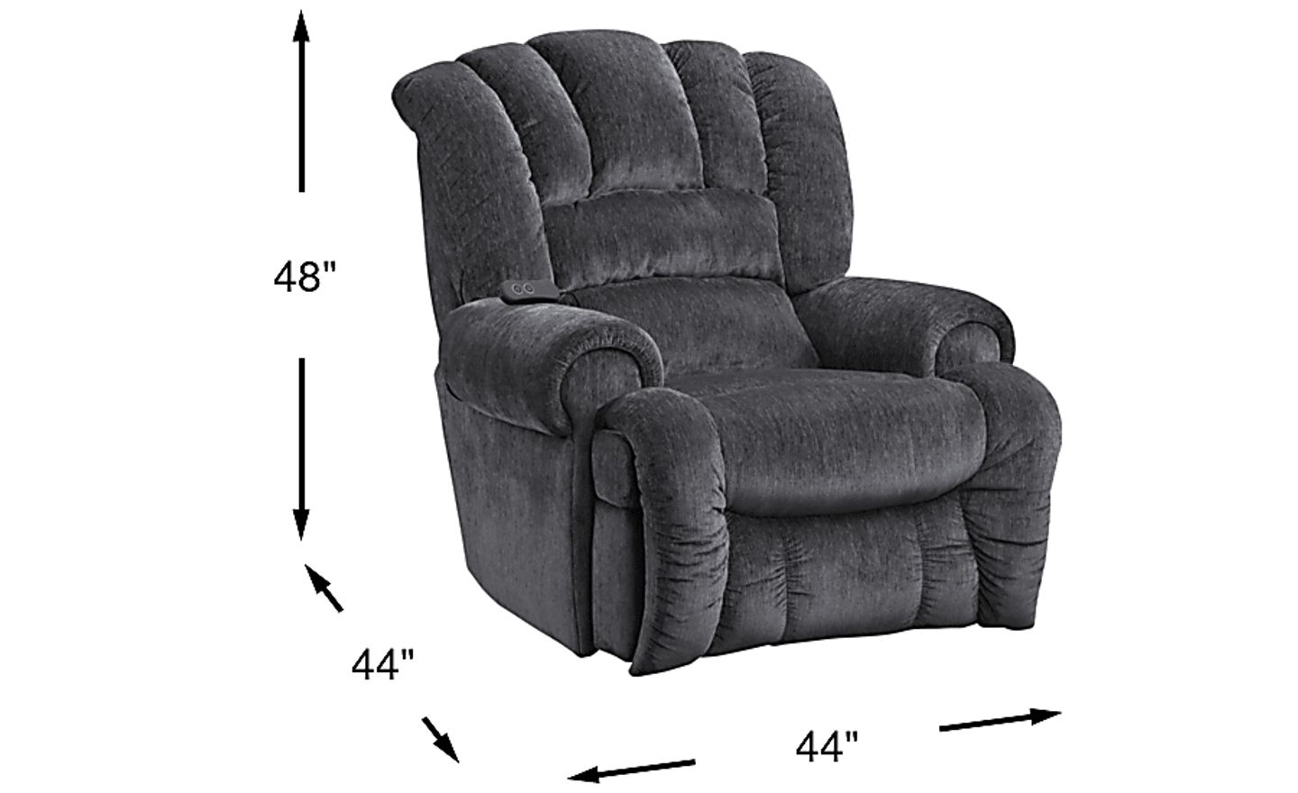 The elegant design reminiscent of an upscale lounge tempered by an everyday feel gives the Patterson power recliner the ability to fit in just about any room with ease. Upholstered with soft, midnight chenille, this power recliner has a gorgeous channeled back to go along with a padded power adjustable chaise footrest designed to eliminate pressure points by fully supporting your legs. The wall saver movement pushes the seat up and forward to limit the space needed behind, while attached remote wand has a button that resets all reclining features and returns you to an upright position. You can even charge some of your favorite electronic devices with the USB-C port on the remote.