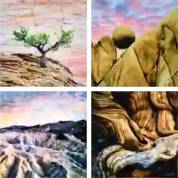 On this majestic set of 4 reverse printed tempered art glass pieces, the Patzke VI multi artwork persuades us to ponder in the solitude of the mountains and a small bonsai, standing alone but keeping strong. This set of four panels will fill your wall with harmony, each comes with a pre-installed steel sawtooth hanger for easy and quick placement.