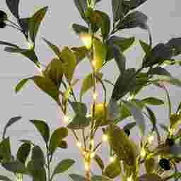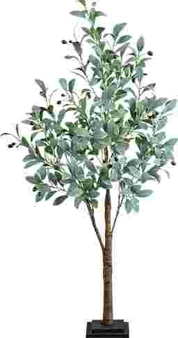 Make a statement with the Menallen I green silk tree with lights. Inspired by the dreamy Mediterranean countryside, lifelike greenish leaves boasts a full canopy of green. Crafted from high-quality materials, feel free to bend the branches to fit in your space. Accented with 300 energy-efficient LED lights, illuminate any area in need of a centerpiece. Standing from a sturdy base, DIY and add to a planter of your choice. We love it in a desktop for when you need both a cozy glow and decor.
