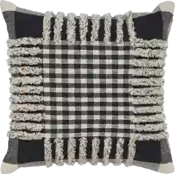 The black gingham pattern is a timeless motif that bridges the gap between rustic farmhouse and crisp contemporary styles. To create a designer-inspired arrangement, pair this pillow with solid-colored textiles in high-contrast tones like cream or slate gray. Because this pillow features a textured fringed edge, it adds a layer of depth when placed against smooth surfaces like leather sofas or high-thread-count bedding.
