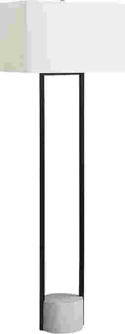 Elevate your space with the Peachbit Black Floor Lamp with a striking black metal base topped in an elegant linen ivory fabric shade. Perfect for brightening up a living room, bedroom, or office, this lamp features a 3-way rotary switch for customizable lighting options. The sturdy cement finish base adds a contemporary touch, while the rectangular shade helps to illuminate your space with a soft, dimmable glow. Partial assembly may be required.