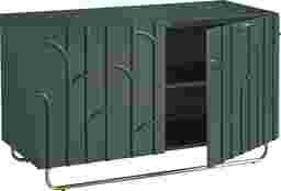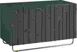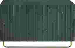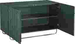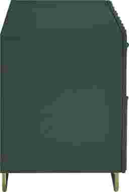 The Peachcloud green accent cabinet offers a chic storage solution that combines functionality and striking design. Crafted from metal and paint-grade veneers, it features a soft geometric pattern that adds a modern touch and visual interest for a dynamic look. Inside, a single removable and adjustable shelf provides customizable storage, perfect for organizing various items. A sleek painted green finish brings a refreshing pop of color to any room with a contemporary twist, while a gold-finished sturdy metal base provides stability and contrast. The fully finished back allows for versatile placement within any room. Customer assembly is required.