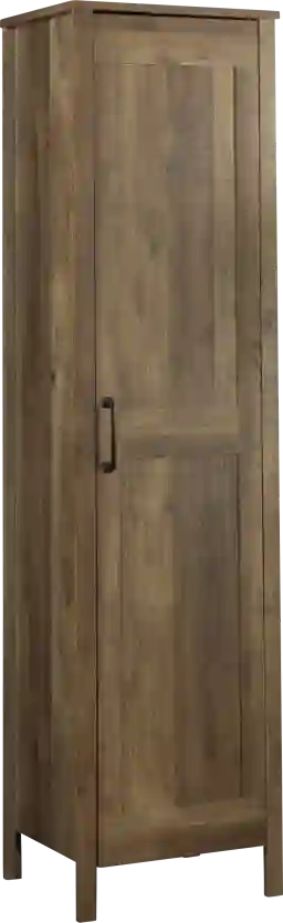 Discover a convenient and versatile storage space without sacrificing personal style with the Peachshack brown storage cabinet. Behind the large door of this single-door storage cabinet is a hidden storage area that includes two adjustable shelves, one fixed shelf, and a bottom shelf for customizable storage options. The adjustable shelves of this rustic cabinet are ideal for a variety of items, from pantry staples to cleaning products, or crafting and office supplies. This 4-shelf storage cabinet has plenty of customizable space. Its slim, single-door stature makes this narrow storage cabinet a handy asset for smaller spaces. Customer assembly is required.