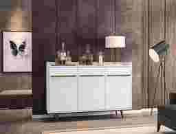 A lesson in design and entertaining, the Peachtube white sideboard takes your dining or living space to the next level turning you into the hostess with the chicest style. Create the dinner party you've always wanted, with easy functional storage and concealed areas perfect for tucking away dishes, linens, and stemware. Durable splayed legs and expert craftsmanship offer a classic mid-century aesthetic and keep this piece feeling trendy and timeless all at once. Transform it by creating a bar area up top, or use it to display candlesticks, fresh flowers, refreshments, or framed family photos. Customer assembly is required.