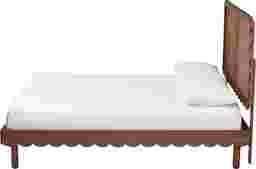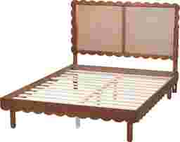 Classic beauty emanates from the serene poise of the Pearlbar brown queen bed. This modern piece is crafted from sturdy wood. Both the frame and silhouette of the headboard feature a scalloped border for a vibrant silhouette that highlights the woven rattan panel. The Pearlbar utilizes wood slats for mattress support, eliminating the need for a box spring, not included. Rounded legs complete the look, making the Pearlbar a sleek and cozy bedroom centerpiece. Customer assembly is required.