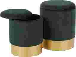 Bring a note of glamour to your home with the chic design of the Pearlie nesting ottoman. This set features a luxuriously soft cushioned velvet top and chic gold metal base. The smaller ottoman nests inside the larger ottoman for a space-saving design.