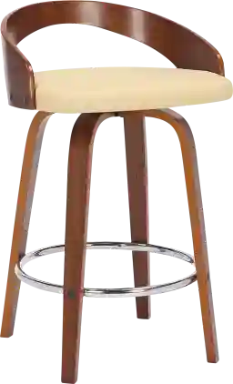 Add a touch of mid-century modern magic to your home with the Pearllight cream counter height stool. Designed with comfort and style in mind, this stool features a 360-degree swivel that allows you to easily interact with your friends and family regardless of their place in the room. The curved wood low back is ideal for posture alignment and an unmatched support, its opening is perfect for breathable easy seating. The Pearllight features a high-density foam cushion and beautiful faux leather upholstery that will allow you to sit or entertain for hours on end. The foundation of the product is supported by wood and chrome footrest for a chic and stylish aesthetic without comprising practicality and functionality of this item. Customer assembly is required.