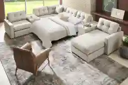 With a wide 156-inch footprint and deep, comfortable seating, this sofa is perfectly scaled for large multi-purpose rooms. Its integrated Bluetooth speakers and charging stations make it a premier choice for a home theater setup. Furthermore, the modular flexibility allows you to create a "pit" style configuration for movie marathons, while the Sealy sleeper mattress easily converts the space into a guest suite for sleepovers.