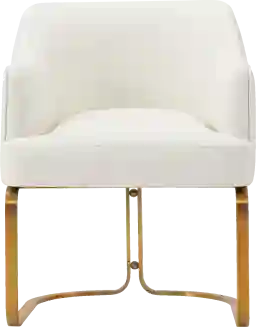 Elevate your dining or workspace with the chic Pegan cream arm chair. Crafted with precision from high-quality elm wood and featuring stainless steel gold legs, it's the epitome of style and durability. Luxurious leatherette upholstery with high-density foam padding ensures comfort, while the unique floating design, adorned with vertical ribbed back stitching and geometrical gold base details, adds a touch of sophistication to any room. Arriving fully assembled, this chair is a hassle-free way to bring elegance and comfort into your space.