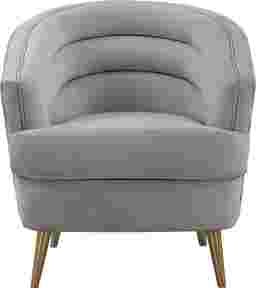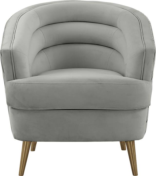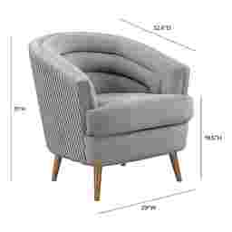 The Pelanconi gray accent chair features a pleated back and deep tufting in the front, finished with brass stainless-steel legs. The Pelanconi will surely add an element of glamour to any space. Customer assembly is required.
