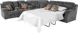 The Pelham sectional offers everything you need for evenings and weekends of relaxation. Upholstered with rich brown plush woven fabric and comfortable contoured seats, the sectional features a loveseat with double recliners, handy cup holders and lift top storage for remotes. Plus, the sofa's queen innerspring mattress makes convenient accommodations for overnight guests. Pelham Brown 3 Pc Sectional100% Polyester
