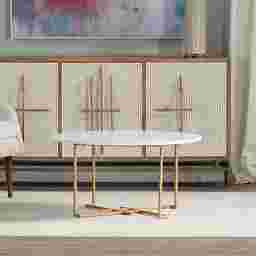 Currently available exclusively for our Florida customers, this table is perfectly suited for the bright, airy aesthetics often found in coastal or "Florida Room" designs. The combination of cool-to-the-touch white marble and a reflective gold finish complements the natural light of the region, while the open crosshatch base maintains a sense of visual "coolness" and airflow in your living space.