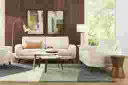Unmistakable energy and a spirit both fresh and iconic make the Penn Station loveseat a bold take on timeless style. Sweeping lines upholstered in rich cream corduroy accentuate the dynamic flow of this midcentury-inspired contemporary collection. Wide and inviting track arms taper to soft ridges, their curves echoed in the attached seat cushions. Completing the inward arc of the arms, the base creates a unique hourglass effect against outwardly canted wood legs. Upholstery: 100% Polyester.
