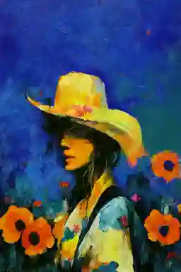 The Pennacook II blue artwork shows a cowgirl within the orange meadows. Gallery wrapped with a matte surface that never glistens. Fade, tear, water, scratch, and warp resistant. This piece has high resolution, good lightfast and anti-aging properties. Finished by hand with non-yellowing, water-based archival print varnish. Acid-free and made with archival quality print process. Ready to hang and arrives with built in hole wide straps.