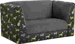 The Penny brown pet bed is a place for your furry friends to call their own and look great in shared spaces. This sofa pet bed is upholstered in a fashion print on the exterior and a plush fabric on the interior in which pets can make themselves cozy. Each bed is crafted out of solid wood and a super soft fiber/foam fill. Available in an adorable fuzzy buddies dog print in a rich hue. The perfect blend of style, comfort and function. Outside:100% Cotton. Inside:100% Poly. Customer assembly required.