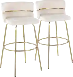 This stool features a sturdy 4-leg metal frame finished in a stylish gold. To protect delicate flooring, we recommend using felt or rubber floor glides. Because these stools are often moved in high-traffic kitchen areas, adding these protectors provides a layer of defense against scratches while also dampening noise during movement.