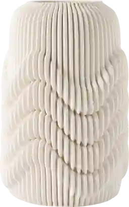 To preserve the contemporary textured finish of this vase, we recommend regular dusting with a soft, lint-free cloth. For more thorough cleaning, our general care guidelines suggest using a soft sponge dampened with a mixture of mild soap and warm water. Avoid using abrasive pads or harsh chemical cleaners, as these can strip the ivory finish or damage the intricate surface texture.