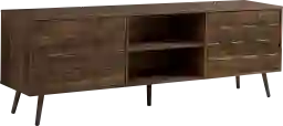 Jazz up your home with the Peritsa brown console. This tv console features solid wood legs and durably designed solid construction in a fashionable mid-century style that is sure to elevate your home decor. Offering ample storage space that includes 2 fixed shelves and an elegantly paneled closed cabinet at each end that operate with a push latch mechanism for easy opening, this tv stand is both functional and chic. The easy to clean top and 2 cable management holes in the center ensure that your entertainment center stays organized and looking great. Assembly is a breeze with the included hardware and easy to follow instructions. Customer assembly is required.