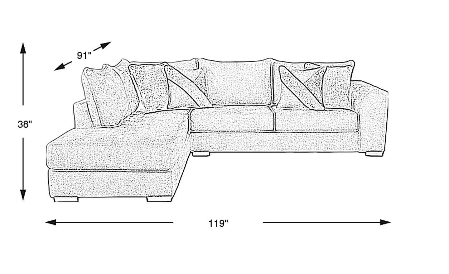 119.00"w x 91.00"d x 38.00"h