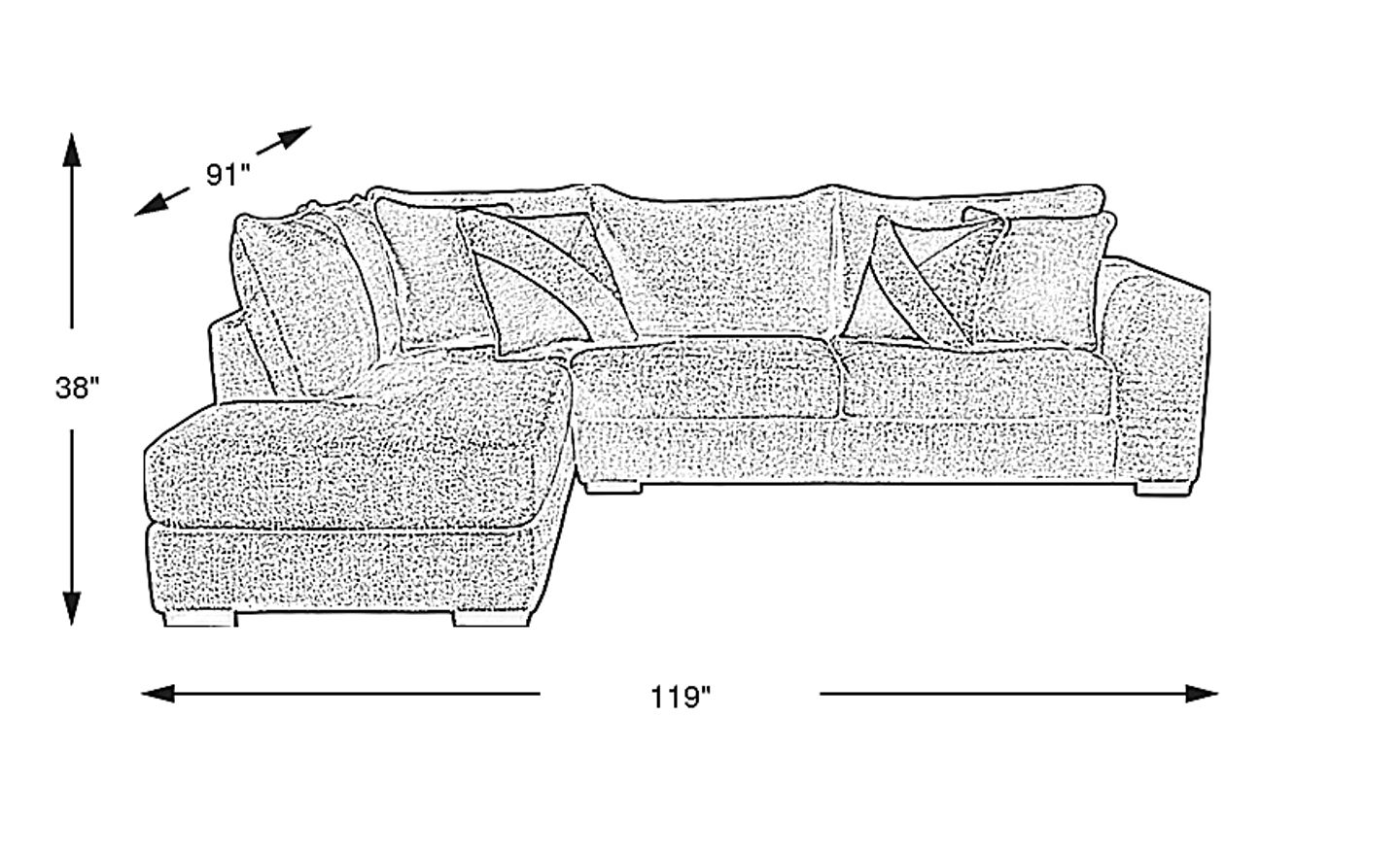 Matching your mood and being a whole vibe are one in the same for the inviting comfort of the Perry collection. Transforming your space into a sanctuary of relaxation and style starts with this transitional sectional's soft woven fabric in a soothing teal color. Rounded wedge arms running from the right-arm facing sofa to the left-arm facing chaise tailor the piece with a sleek but welcoming ambiance. Loose seat cushions provide plush, cloud-like support that will make you want to lounge longer. Dark brown square tapered legs add a refined contrast, grounding the piece with a touch of elegance. Coordinating accent pillows layer the look with a hint grandeur for the perfect final touch. Upholstery: 100% Polyester. Cleaning Instructions: Use water based cleaning agents or foam.