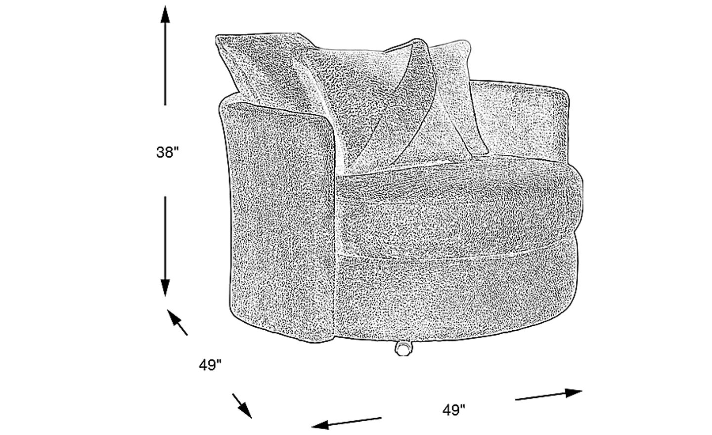 With a generous 49" x 49" footprint, this chair is a "chair-and-a-half" or "cuddler" scale, providing significantly more seating area than a standard armchair. To fully utilize the pivot motion base, we recommend placing it with at least 15 to 20 inches of clearance from walls or other furniture. This ensures a smooth rotation and prevents the plush pillow-top arms from making contact with nearby surfaces.