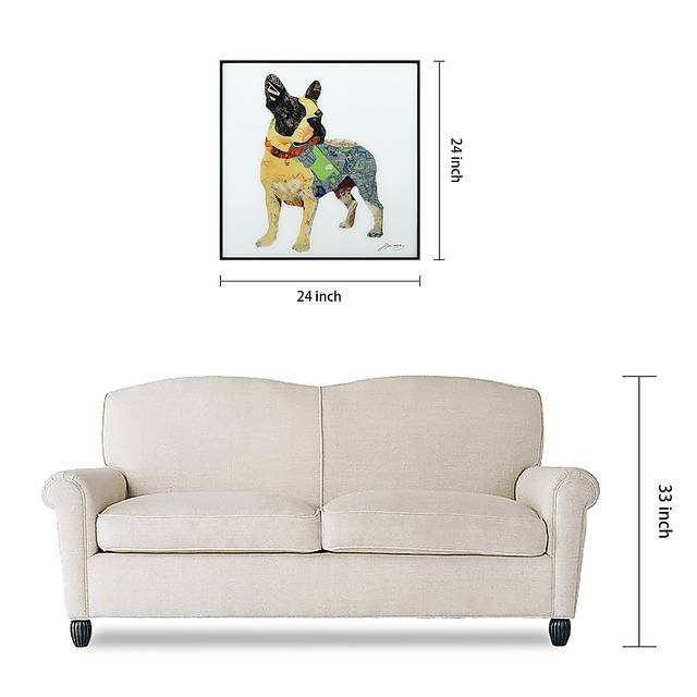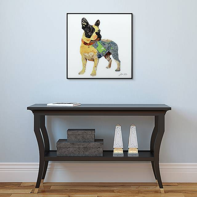 Add a vintage touch with the Perry The Dog artwork and incorporate its intricate details into your interior decor. This piece displays a colorful dog on printed glass with anodized aluminum black frame.