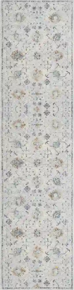 Elevate your space with this performance rug a timeless blend of sophistication and comfort. This power loomed masterpiece, expertly crafted in Turkey from premium polyester, offers durability and easy maintenance. Its bordered design, adorned with floral and botanical motifs, effortlessly spans Traditional, transitional, and casual styles. From living rooms to dining areas, kitchens to bedrooms, and even outdoor patios, this rug adds an air of refined elegance to any space. The delicate interplay of gray and blue hues creates an aura of tranquility and grace. This indoors rug redefines your ambiance, uniting style and functionality seamlessly. Experience of this captivating piece, designed to transform your surroundings into an oasis of charm and sophistication.