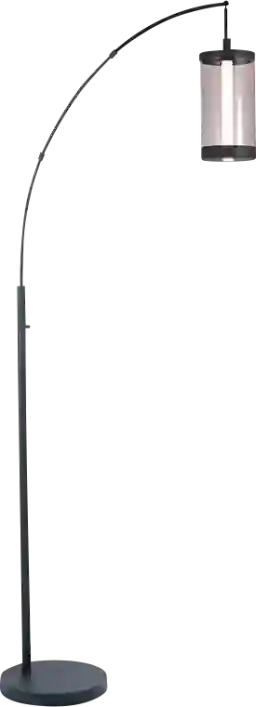 Bold and artistic, the Petoskey Cove Black Arc Floor Lamp makes a dramatic statement with its striking contemporary design. The smoked glass shade encases an integrated LED module, casting a soft, mysterious glow that elevates any space. A built-in spotlight beneath the shade adds practical function, offering focused light ideal for reading or accenting your favorite corner. The rotary dimmer switch allows you to easily adjust brightness, blending style, mood, and utility in one sleek form. Perfectly suited for placement beside a sectional or behind a sofa, this lamp adds both beauty and brilliance to your living space. Partial assembly may be required.