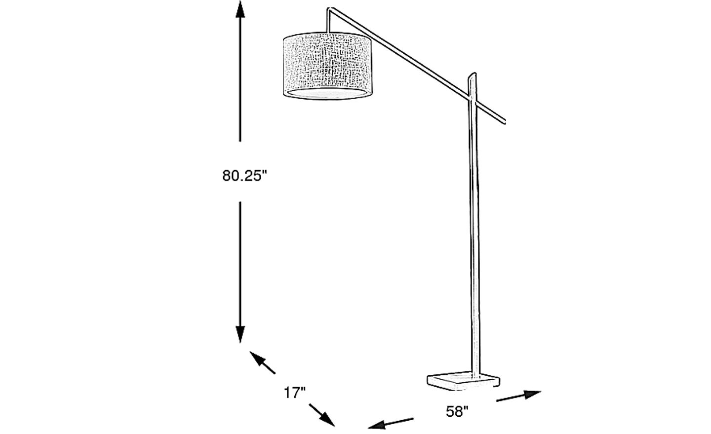 With a height of 80.25 inches and a width of 58 inches, this floor lamp is significantly taller than a standard lamp (which usually ranges from 58 to 64 inches). Its cantilever design allows the shade to hang directly over the center of a seating area, making it an excellent choice for large sectionals or rooms with high ceilings. We recommend placing it behind or beside furniture where its broad reach can provide overhead light without the need for a fixed ceiling installation.