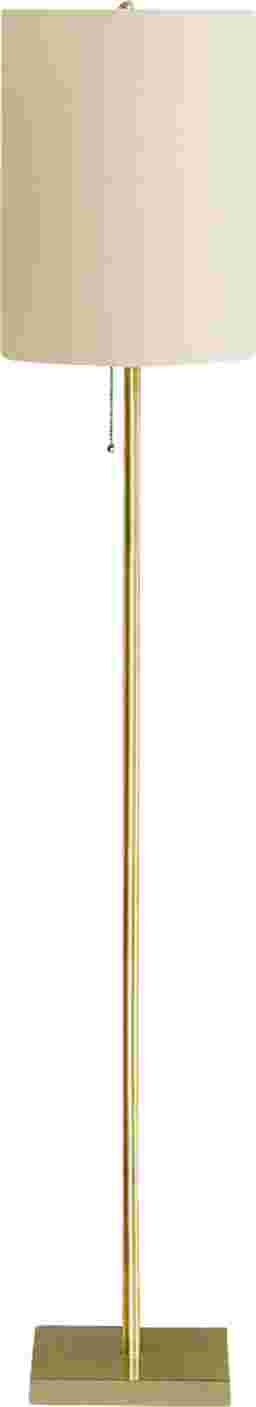 Upgrade your living space with the Phanta Gold Floor Lamp in sleek brass metal. The simple contemporary design features a decorative ivory drum shade for a touch of sophistication. With a pull chain for an easy on/off operation, this lamp is perfect for brightening up a corner of your living room, bedroom, or office to create some ambiance. Illuminate your home in style with this chic lighting fixture that is sure to be a standout accent in any room. Partial assembly may be required.