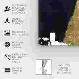 Make any space in your home innovative and unique by adding the Phase Of Change art piece made by real artists. With an overarching gold color and metallic texture that will add a dynamic feel to your home decor. This strokes wall decor is printed using ultra-premium and fade resistant inks to guarantee high definition and vivid colors. This piece is made with museum grade canvas professionally hand stretched in a 1.5 inch-thick sustainable wood frame. This wall art is carefully wrapped with a layer of shrink-wrap that protects the surface and then wrapped with heavy-duty bubble wrap, ensuring its safe arrival to its new home. This abstract art print is the perfect finishing touch to your home decor theme.